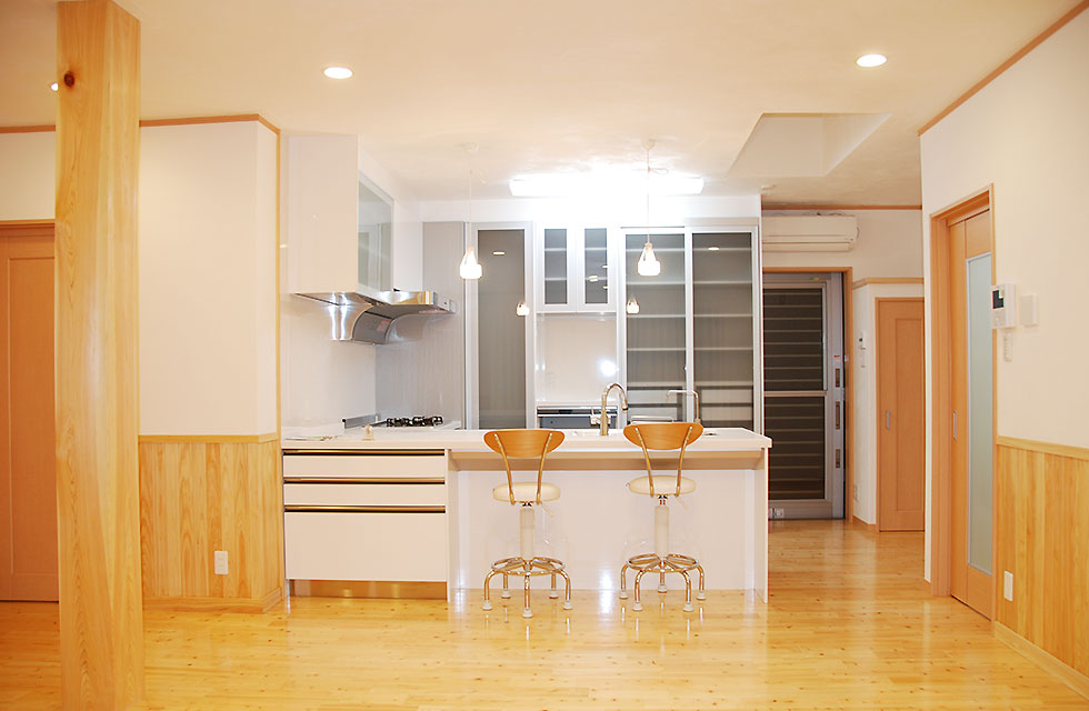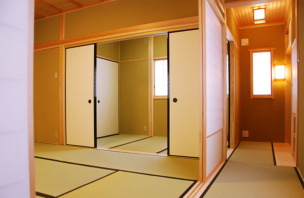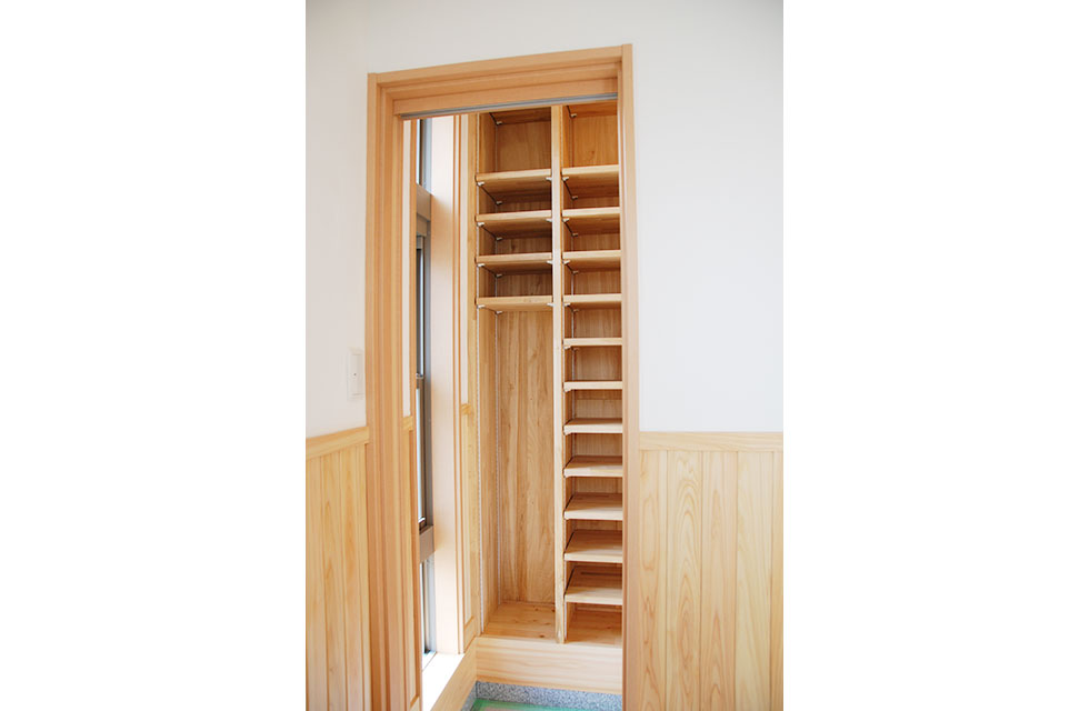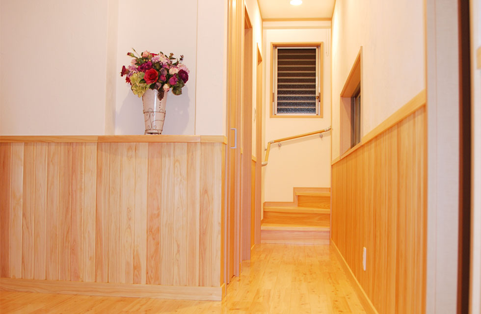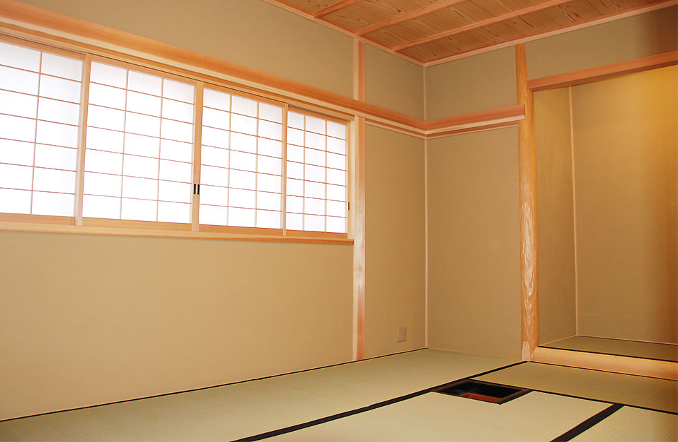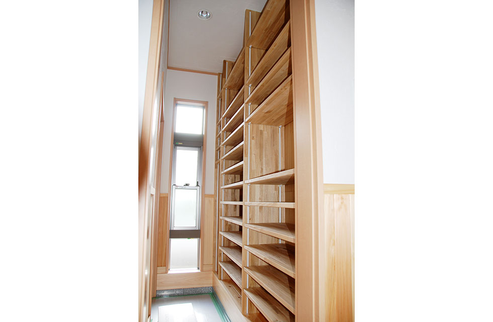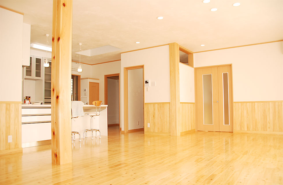 住まいづくり教室で、家づくりの考え方が変わった。 玄関ホールから奥の階段 5mx6mの大空間を支える8寸柱があるLDK リビングに隣接する畳コーナー リビング横のライブラリー室。お子様の勉強スペースにも。 ライブラリー室の本棚 洗面脱衣室。家族分の衣類棚。 中二階のお茶室の水屋 床の間の天井 リビング入口より畳コーナー 畳コーナーよりLDK 玄関横のシューズクローク 玄関からシューズクロークへ お茶室 前室から水屋とお茶室 広縁からお茶室、前室、広縁奥の水屋 炉がきってあるお茶室 お茶室から前室、広縁 水屋 外観。右側駐車場の上がスキップフロアの茶室 玄関へのアプローチ 駐車スペースの大空間を実現する為、集成材の大梁を使用 家族が集まる大空間リビングと、スキップフロアの茶室 住まいを新築しようと思い立ったきっかけを教えてください。 以前、みやたつ建設さんに実家を建てていただきました。 その時のみやたつ建設の方々の丁寧な対応や、親身になってお話を聞いてくださるお人柄がすごく印象に残っていたことと、希望通りの住まいが完成したことで、私たちも家を建てる際はまたみやたつ建設さんへお願いしたいと考えておりました。 エピソード 建設時のお話を聞かせてください。 まずは、間取りや仕様決めなどの打合せなど私達の意見を聞いて下さり、納得いくまで何度も打合せを繰り返していただいたので、とても安心して進めることが出来ました。 職人さんの対応や、現場の状態もいつもきちんとされていて、本当に気持ちよく対応していただきありがたく思ってます。不快な思いをすることは一度もありませんでした。 担当者の方の対応も、私たち以上に我が家のことを考えて下さり、ただただ感謝しかありません。 みやたつ建設に依頼をして、どうでしたか? 完成後の出来栄えもイメージ通りで、毎日帰宅するのが楽しみな家になりました。 後悔もなく大変満足しています。 みやたつを選んだ理由 みやたつ建設に依頼した決め手は何ですか? みやたつ建設での家づくりで決め手になったのは、細やかで私たちの事を本当に考えていただいていることです。何度も打ち合わせをしてもらえるので不安もなくなり、ちょっとしたことでも迅速に対応してもらいました。 お任せして良かったといつも思っております。 また、完成してからも何かとお世話になり、安心して暮らすことができています。 みやたつ建設からのメッセージ ご夫婦共お忙しい中での打合せは、終始奥様主導で打合せさせていただきました。隣接する奥様のご実家とのアプローチや、要所要所での収納、動線など、細かく打合せして作り上げていきました。お子様の勉強専用スペースも居間に隣接して作ることや、多目的に使える茶室などは、最初からこだわって要望されてました。桧の無垢材や珪藻土の塗り壁なども住環境がよくなるならと採用されました。個人的には茶室の材料を色んな所で探して廻ったのが大変でしたがいい思い出です。(プラン・現場担当:宇都)最後までお読みいただき、ありがとうございます。あなたも、まずは、住まいづくり教室(ホーミー教室)で「あなたの家族にとって最適な住まい」について学んでみませんか?スタッフ一同、心よりお待ちしております。